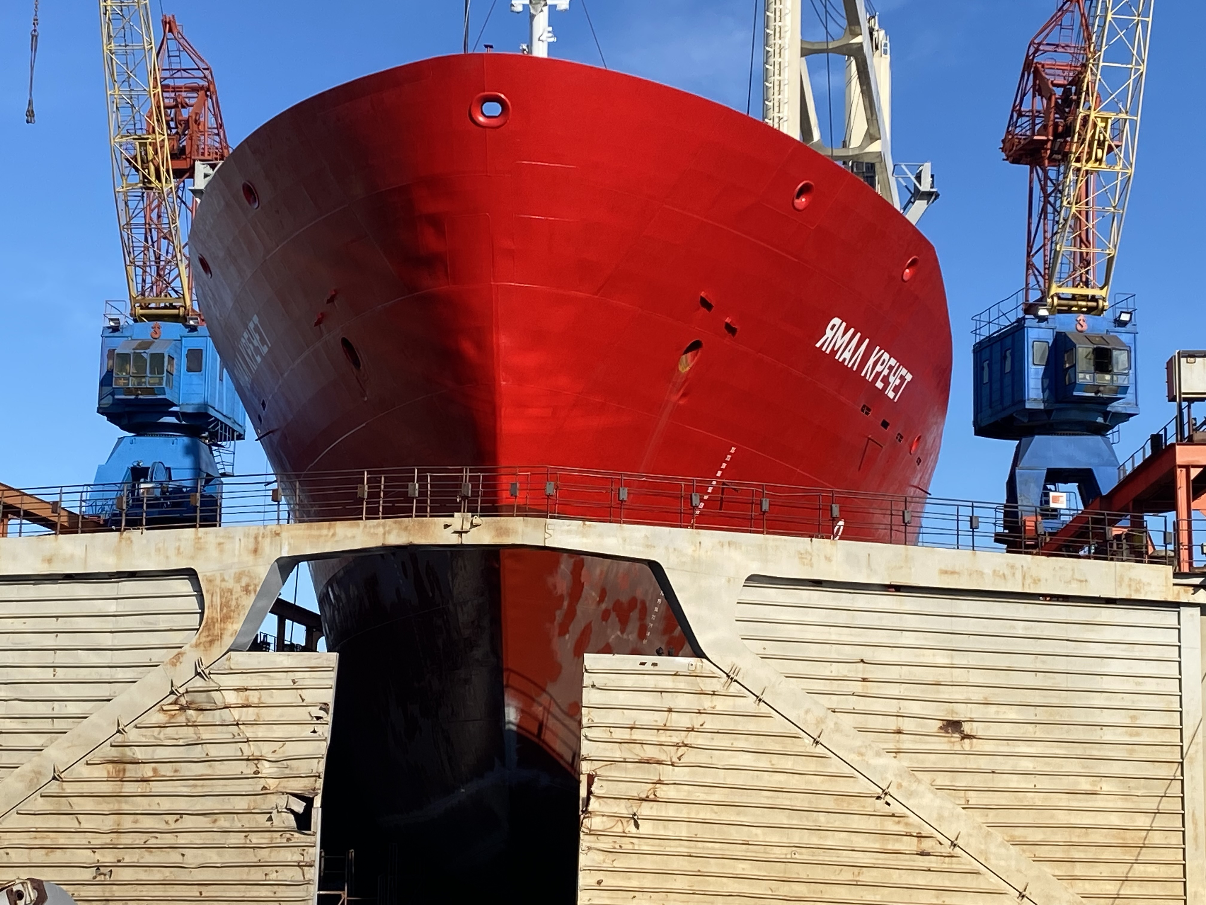 Архангельский филиал Центра судоремонта «Звёздочка» ОСК СРЗ «Красная Кузница» провел операцию по спуску на воду после ремонта очередного заказа. Из плавучего дока М-32 был выведен сухогруз «Ямал Кречет».